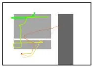 - Colour trajectories: Mouse trajectories are rendered as lines connecting consecutive coordinates. Each trajectory starts and ends with cursor-shaped markers in green and red colour, respectively. Line colours follow a temperature gradient, transitioning from green at the start to red at the end. Line thickness represents the percentage of time spent, with thicker segments corresponding to earlier parts of the trajectory. All slot boxes are shown in grey.