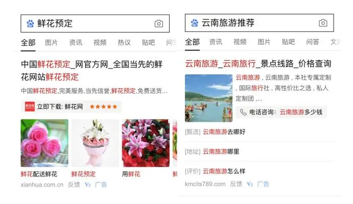 For the rich advertisements in sponsored search, there are a lot of ad extensions or formats in Google[17] and Baidu[4]. The ad creation optimization was less studied by academia. But there was some research work about how to design the combinatorial auction mechanism for rich ads [3, 11, 22]. Two sampled rich search ads in Baidu are presented in Figure 1, there are text creations, images, download links, phone call button, sitelink extensions in the ads.