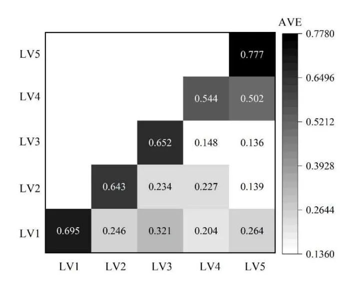 The results of the aggregation validity and differentiation validity tests of the consumer behavioral decision-making model in this paper are specifically shown in Figure 2. It can be seen that all AVE values are greater than 0.5, which indicates that the measurement model has a high degree of convergent validity. The AVE value of each variable is greater than the square of the correlation coefficient, i.e., the measurement model is set up so that certain indicators that are not correlated with certain latent variables are indeed not correlated, which indicates that the measurement model also has a high degree of discriminant validity.