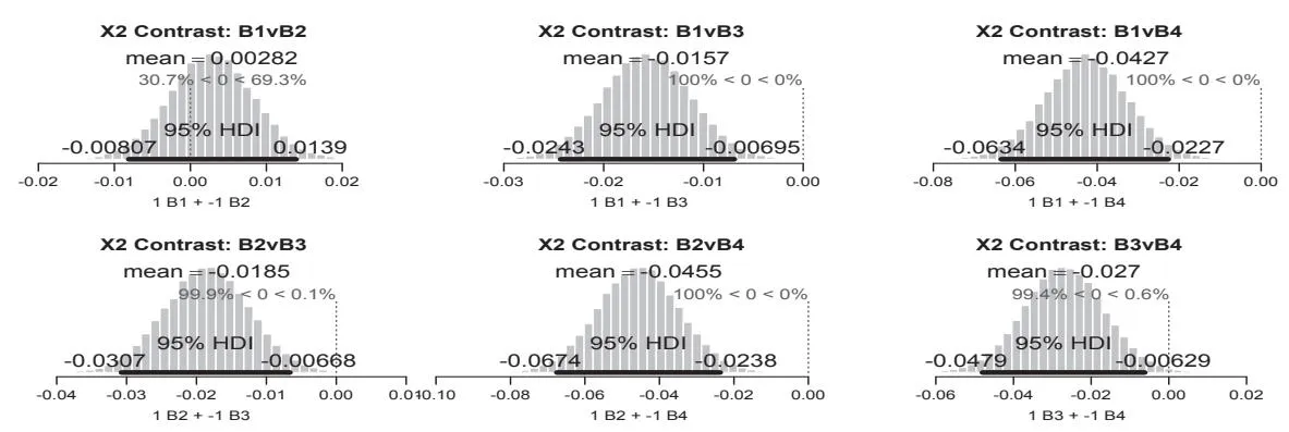 Figure 5: Contrasts for various levels of trust seal information (X1).