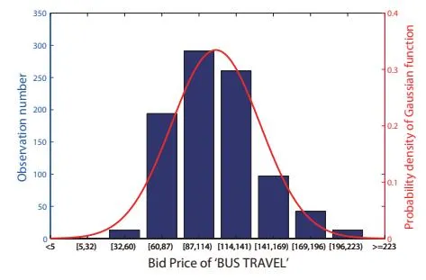 Figure 3: A case of Gaussian fitting for the bound of the winning price intervals.
