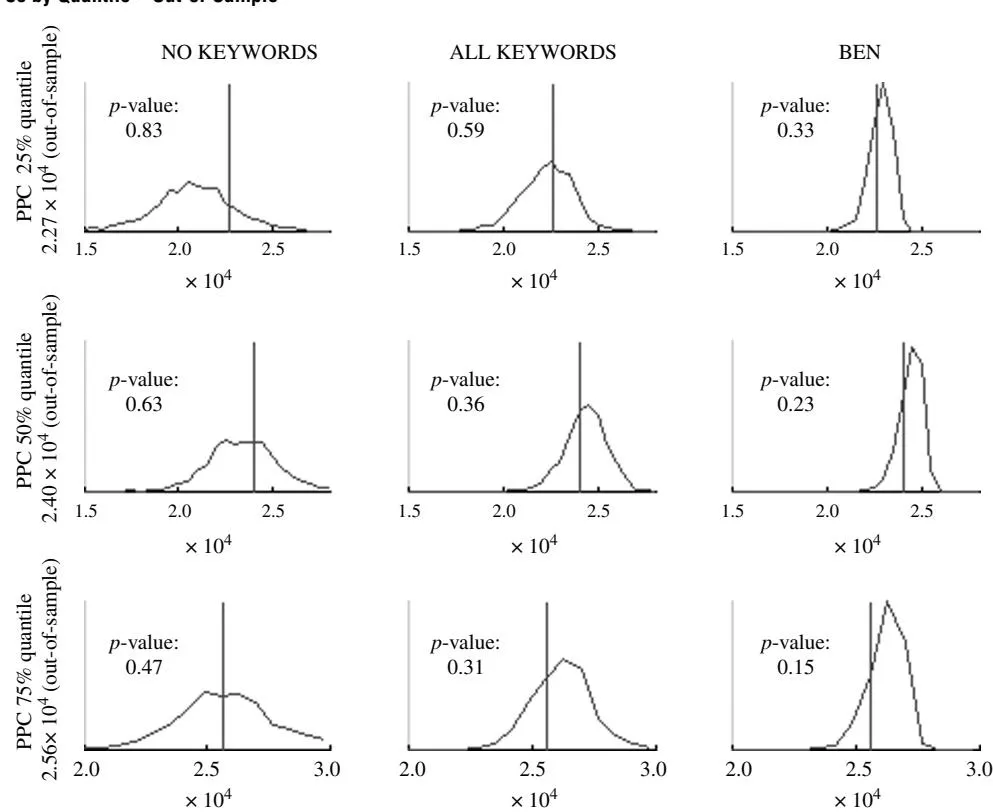 In sum, we found evidence for a difference in effectiveness between broad and narrow keywords. Based on our findings, broad searches lead to more return visits whereas narrow searches do not. Thus, we conclude that, for our firm, a narrow search seems to indicate a consumer who knows what he is looking for. This consumer has, most likely, made up his mind and checks whether our firm has an offer that fits his needs or not, without the need to return. A broad search seems indicative of an early stage in the funnel that leads to more information gathering and return visits. This interesting pattern might be used by firms to cast a new light on CPC. Firms often scrutinize their most expensive keywords closely and also seek “diamonds in the rough,” i.e., small keywords that are cheap but effective. Our results suggest that the broad and expensive keywords might offer more value than previously thought if long-term effects such as return visits are taken into account. On the other hand, our semantic findings are specific to our firm. Paid search keywords can represent a variety of very different searches and differ across categories and industries. Nonetheless, the BEN model together with our approach to create the semantic keyword characteristics can be applied by other firms to data from Google Analytics, thus largely avoiding the need to collect additional information.