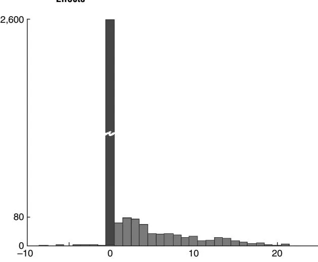 As noted previously, a key challenge in estimating individual keyword effects is that the number of keywords is much larger than the number of observations. In our case, we need to estimate the effects of 15,749 keywords from 117 data points (see Table 2). From a practical perspective, it seems unlikely that all keywords would have a strong effect on return visits. For example, keywords that do not lead to clicks are unlikely candidates for generating direct visitors after the search. A paid search ad consists