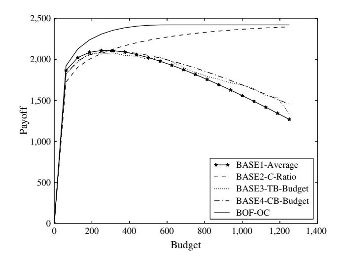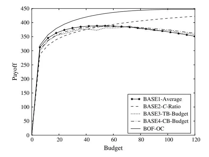 As shown in Figure 9, the payoff from the BASE2- C-Ratio method is very close to that from our BOF-OC solution when C (C1 and C2 ) is small (NPD ≈ 0 region). This indicates that we can use the BASE2- C-Ratio method to approximate the optimal solution when C (C1 and C2 ) is relatively small. We investigate this further in the next section.