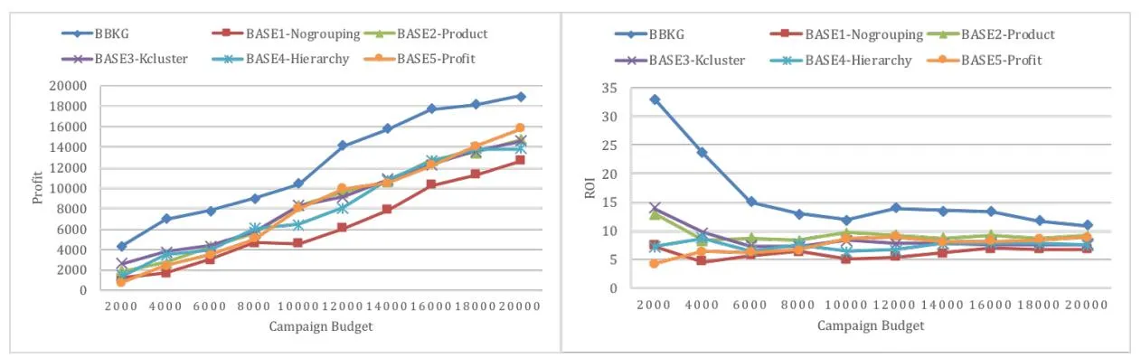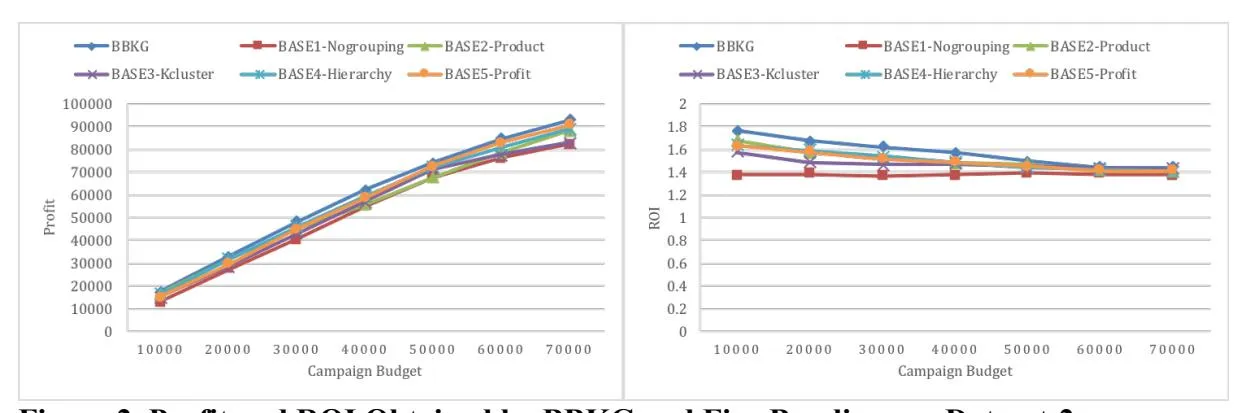 Figure 2. Profit and ROI Obtained by BBKG and Five Baselines on Dataset-2