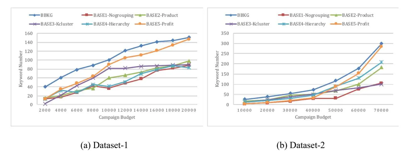 Figure 3. The Number of Keywords Assigned by BBKG and Five Baselines