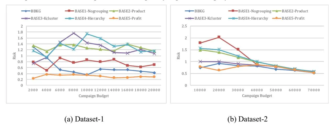 Figure A1. Risk over Campaign Budget by BBKG and Five Baselines